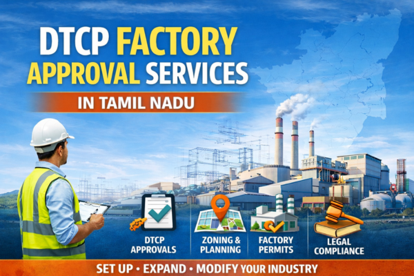 We provide DTCP Factory Approval services across Tamil Nadu, assisting industries in obtaining mandatory planning permission from the Directorate of Town and Country Planning (DTCP), Government of Tamil Nadu. DTCP Factory Approval is required for setting up, expanding, or modifying factories and industrial buildings in accordance with approved land use, zoning regulations, and development control rules.
